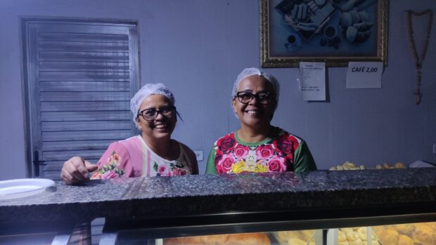 Durante a caminhada, as irmãs Rosimar Souza Araújo e Maria Souza Araújo, recebem os romeiros com café quentinho e sorriso no rosto. “Pra gente é uma festa de devoção, muita fé e esperança”, aponta.