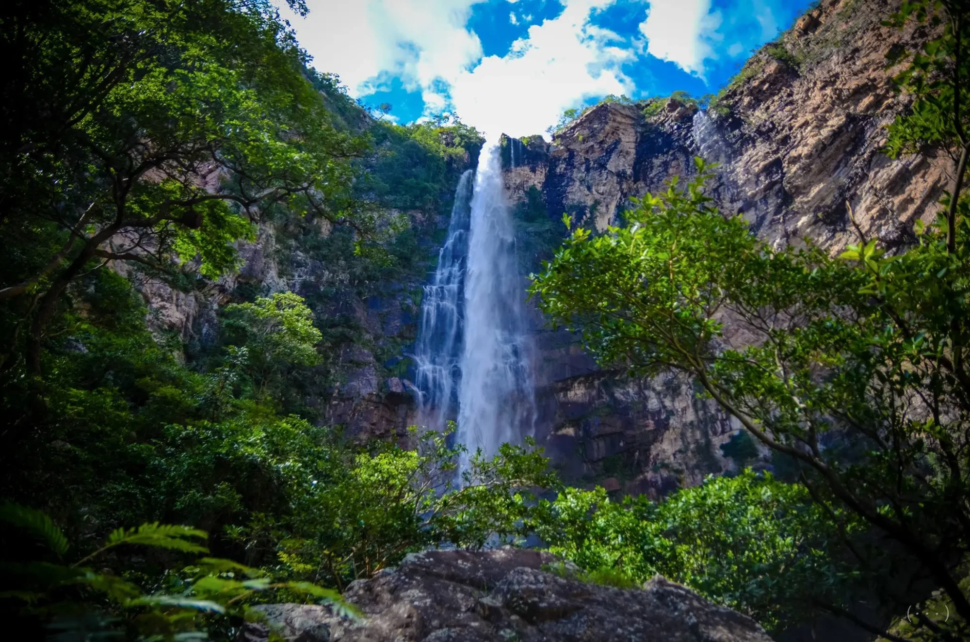 Com 187 metros de queda, é uma das maiores cachoeiras de Goiás, e, paradoxalmente, uma das menos conhecidas. O acesso remoto garante exclusividade. Para quem busca renovação, a força da água e a imponência da paisagem criam uma experiência marcante.