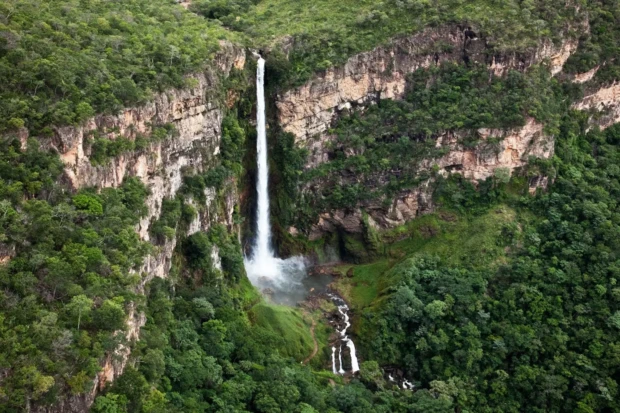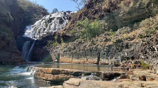 Essa é considerada a maior cachoeira de Goiás, com impressionantes 187 metros. A região guarda um imponente paredão de pedra e o poço profundo e esverdeado. É uma experiência de contemplação da força da natureza.