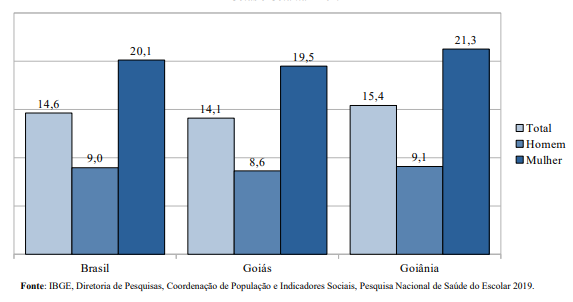 Dados da Pesquisa Nacional da Saúde do Escolar (PeNSE), do Instituto Brasileiro de Pesquisa e Estatística (IBGE) divulgados nesta sexta-feira, 10, indicaram que 14,1% das estudantes entre 13 e 17 anos do estado de Goiás já foram tocadas, manipuladas, beijadas ou passaram por situações de exposição de partes do corpo contra a sua vontade. Desse percentual, a maior parte dos que reportam os casos são meninas (19,5%); somente 8,6% dos meninos expõem os casos.