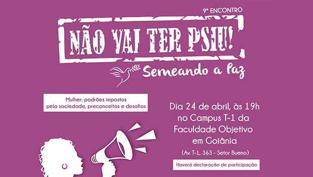 A Câmara Municipal realiza na próxima terça-feira (24/4) o 9º Encontro em Defesa e Valorização da Mulher da campanha “Não Vai Ter Psiu!” e projeto Semeando a Paz. O evento será realizado no auditório do Campus T-1 da Faculdade Objetivo, no Setor Bueno, com o tema “Mulher: padrões impostos pela sociedade, preconceitos e desafios”.