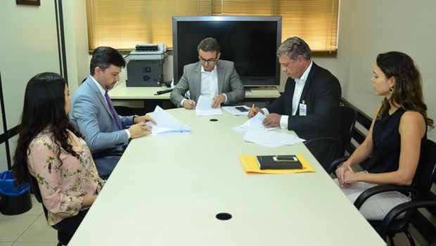 O secretário titular da Secima, Hwaskar Fagundes, assinou na sede do MP-GO o Termo de Ajuste de Conduta (TAC), juntamente com o Procurador Geral do Estado, Luiz César Kimura, e o titular da 81ª Promotoria de Justiça, Marcelo Fernandes de Melo.
