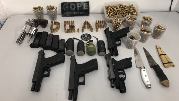 A operação realizada pelo Grupo de Operações Penitenciárias (Gope) junto com as forças do Comando de Missões Especiais (CME) da Polícia Militar também encontrou quatro pistolas, um revólver, três artefatos explosivos improvisados e 600 munições.