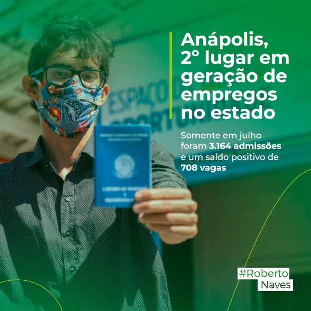 O prefeito de Anápolis Roberto Naves (PP) anunciou e comemorou nesta quinta-feira, 28, a segunda posição do município em geração de empregos no último mês em Goiás. Segundo informações do Cadastro Geral de Empregados e Desempregrados (Caged), são 3.164 novos postos de empregos criados na criados na cidade.