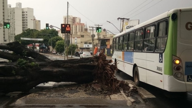 Após a forte chuva que caiu na capital nesta quinta-feira (18/10), a queda de uma árvore no centro da cidade interditou o anel interno da Praça Cívica, em pleno horário de pico.