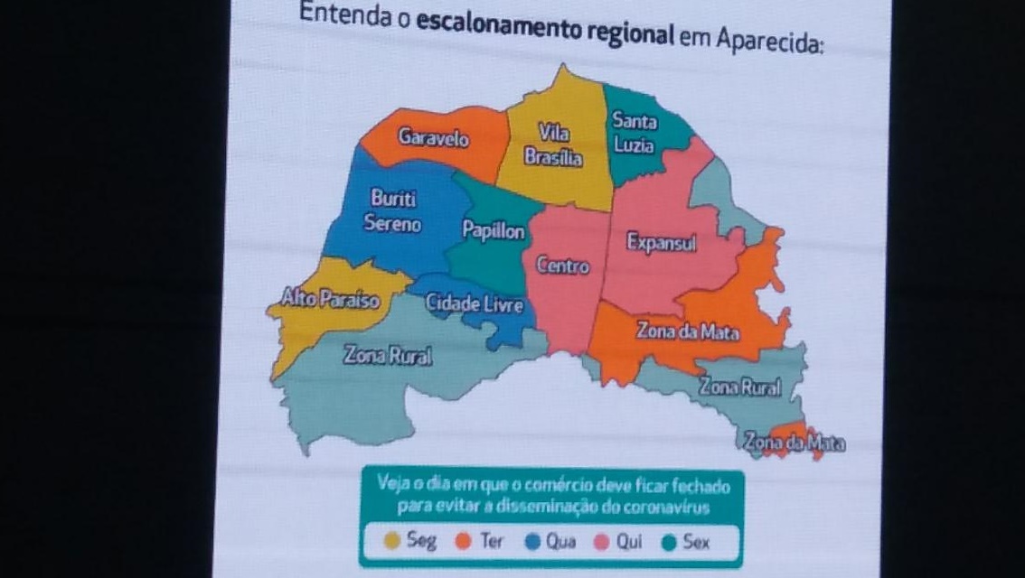 Anunciado em entrevista coletiva na tarde desta quarta-feira, 3, pelo prefeito Gustavo Mendanha (MDB), Aparecida de Goiânia deve entrar em novo modelo de flexibilização das atividades produtivas. A cidade foi dividida em 10 zonas que serão abertas em diferentes dias da semana.