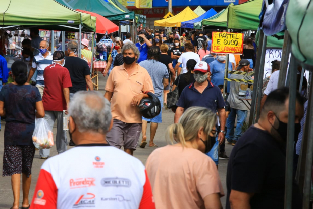 Na Avenida Igualdade, setor Garavelo, em Aparecida de Goiânia, o fluxo de trânsito esteve pesado durante a manhã deste sábado, 20. Imagens da Feira Livre, no setor Cruzeiro do Sul, mostram aglomerações de pessoas que passavam pelo local, apesar da maioria fazer uso de máscara.