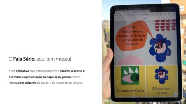 O projeto “Fala Sério, aqui tem museu?” se destaca como uma iniciativa relevante para democratizar o acesso à cultura em Goiás. Lançado inicialmente em 2015 e reformulado em 2023, o aplicativo permite que os usuários naveguem por informações detalhadas de 88 instituições culturais, incluindo 47 museus e centros culturais, 27 bibliotecas e 14 praças e parques de Goiânia e sua região metropolitana. Além disso, a plataforma integra museus virtuais e cibermuseus de diversas partes do mundo, ampliando as fronteiras culturais para além do território físico.