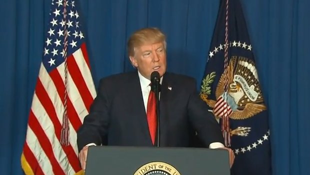 “Nenhum filho de Deus deve jamais sofrer tal horror. Hoje à noite, eu ordenei um ataque militar direcionado a uma base aérea na Síria, de onde o ataque químico foi lançado. É de vital interesse da segurança nacional dos Estados Unidos prevenir e dissuadir a propagação e o uso de armas químicas mortais. É indiscutível que a Síria usou armas químicas proibidas, violou suas obrigações sob a convenção de armas químicas e ignorou a insistência do Conselho de Segurança da ONU.