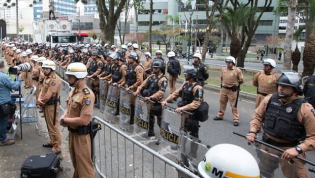 Durante todo o dia, centenas de policiais militares fizeram um bloqueio em um perímetro de 150 metros ao redor prédio da Justiça Federal. Agentes da Polícia Rodoviária Federal e da Polícia Federal cuidaram do isolamento do próprio prédio. Os profissionais também acompanharam os atos a favor e contrários a Lula e fizeram a escolta do carro do ex-presidente.