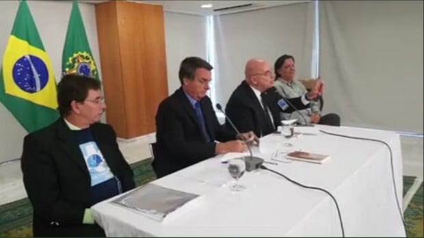 Na reunião, os profissionais apresentam a Bolsonaro opiniões contrárias às vacinas e favoráveis à hidroxicloroquina, remédio que comprovadamente não tem eficácia contra a Covid
