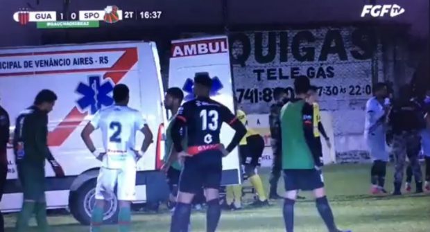 Aos 16 minutos da partida entre Guarani de Venâncio Aires e São Paulo de Rio Grande, um jogador do time visitante agrediu o árbitro Rodrigo Crivellaro, que estava caído no gramado, com um chute na cabeça. O fato aconteceu na noite desta segunda-feira, 4, durante disputa da segunda divisão do Campeonato Gaúcho.
