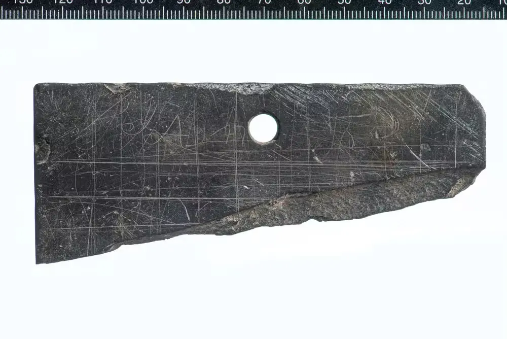 A tábua de ardósia, possivelmente usada como lousa individual, preserva inscrições que ainda estão sendo analisadas. Os pesquisadores não sabem, por enquanto, exatamente o que está escrito nem a data precisa do objeto, mas acreditam que ele tenha sido utilizado por alunos de uma escola gratuita voltada a crianças carentes.