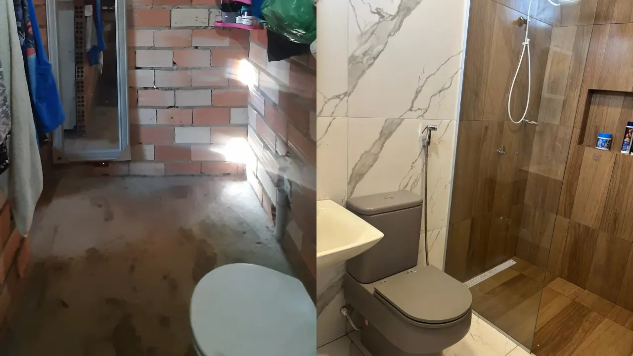 Agora, os cinco membros contam com um banheiro completo: com bancada, piso, box, bacia sanitária e pia. Ele destaca que cada projeto leva em questão à individualidade da família beneficiada para que o espaço seja funcional. Ele descreve o filme que passou na sua cabeça no dia da entrega do cômodo à família.