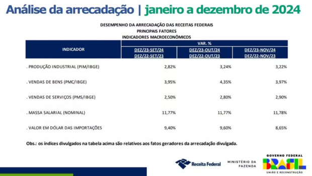 Arrecadação Federal cresce 9,6% em 2024 e chega a R$ 2,65 trilhões