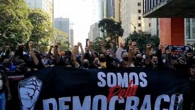Os grupos autointitulados antifascistas e pró-democracia tinham à frente o grupo Somos Democracia, a Frente Povo Sem Medo, o MTST (Movimento dos Trabalhadores Sem Teto) e a CMP (Central de Movimentos Populares), além de grupos antifascistas das torcidas dos quatro maiores clubes de São Paulo: Corinthians, Palmeiras, São Paulo e Santos. Esses movimentos defendem a saída do presidente e exibem mensagens contra o racismo e o fascismo, além de defender a ampliação de direitos da população.