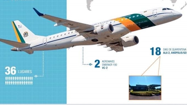 Dois aviões Embraer 190 da Força Aérea Brasileira decolam, nesta quarta-feira, 5, às 12h, da Ala 1 (Base Aérea de Brasília) para buscar os brasileiros que estão em Wuhan, na China, e desejam regressar ao Brasil.