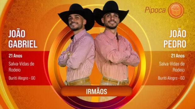 Os irmãos gêmeos de Goiás, João Gabriel e João Pedro, foram anunciados como participantes do Big Brother Brasil (BBB25). Naturais de Goiatuba, mas criados em Buriti Alegre, na região sul do estado, os jovens de 21 anos conquistaram espaço no grupo Pipoca do reality show mais popular do Brasil. Atualmente, eles residem em Bela Vista de Goiás e são conhecidos nas redes sociais por seu conteúdo divertido sobre a vida no campo e o universo dos rodeios.