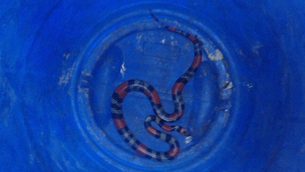 No local, os agentes encontraram uma cobra coral, animal peçonhento, que foi resgatado sem ferimentos.
