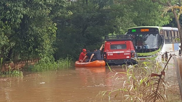 Bombeiros resgatam moradores e passageiros de ônibus ilhados pela chuva em Goiânia