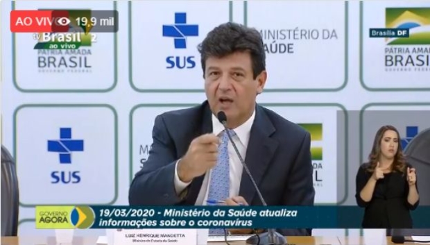 O número de casos confirmados de Covid-19, doença do novo coronavírus, no Brasil já chega a 621, com 6 óbitos em decorrência da enfermidade. A informação foi divulgada na tarde desta quinta-feira, 19, pelo ministro da Saúde Luiz Henrique Mandetta.