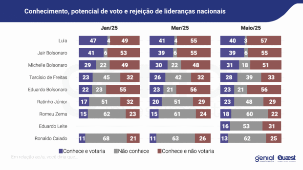 “Pela primeira vez a rejeição ao governo está se transformando em rejeição eleitoral a Lula, alavancando as candidaturas dos potenciais herdeiros de Bolsonaro. O eleitor passou a conhecer melhor nomes como Tarcisio, Ratinho e Zema, e começa a tê-los como opção na eleição presidencial”, completa Nunes.