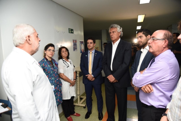 Acompanhado do vice-governador Lincoln Tejota (Pros), do secretário de Saúde, Ismael Alexandrino, e do deputado federal eleito Dr. Zacharias Calil (DEM), Caiado foi conferir a situação de duas das mais importantes unidades de Saúde do Estado, que têm enfrentado graves problemas administrativos e financeiros.