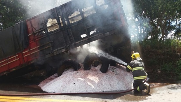 O motorista do caminhão não sofreu nenhum ferimento e tentou combater o fogo com extintor de incêndio até a chegada dos bombeiros.
