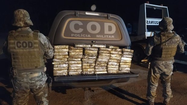 Policiais militares do Comando de Operações de Divisas encontraram a droga ao abordar um caminhão guincho rebocando uma Kombi