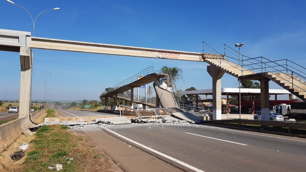 Na mesma rodovia o veículo também causou danos em outra passarela