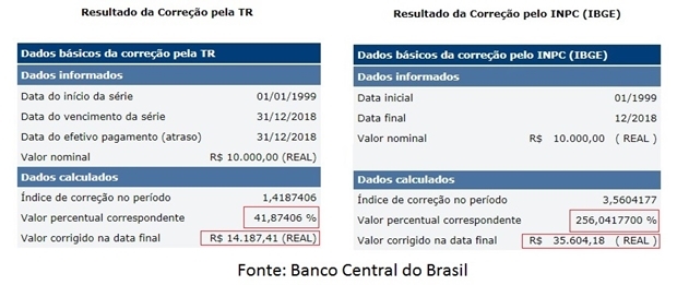 Uma simulação de correção monetária feita no site do Banco Central do Brasil (BC) mostra a discrepância entre a TR e o INPC, um dos mais precisos índices de inflação há décadas e revela: a diferença entre os dois ultrapassa a marca de 200% em 20 anos. No entendimento da assessoria jurídica da ABCTE, a aplicação da TR neste caso é inconstitucional.