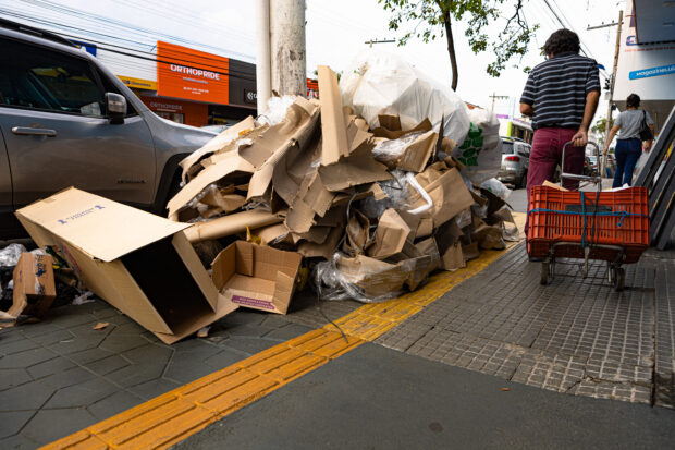 Além disso, o cenário é agravado pela falta de lixeiras adequadas e pela resistência de uma parcela da população em contribuir para a limpeza pública, seja pela falta de conscientização ou pela ausência de incentivos. “O pessoal da Prefeitura passa aqui para varrer mas vem gente e joga lixo logo em seguida”, reclama Maria de Lurdes, comerciante da região da 24 de Outubro, destacando a dificuldade de lidar com o descaso de alguns pedestres.