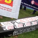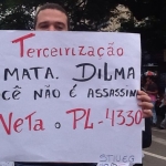 Durante o ato foi possível ver cartazes comparando a terceirização com a “morte” de trabalhadores e pedindo para a presidente Dilma Rousseff (PT) vetar a PL.
