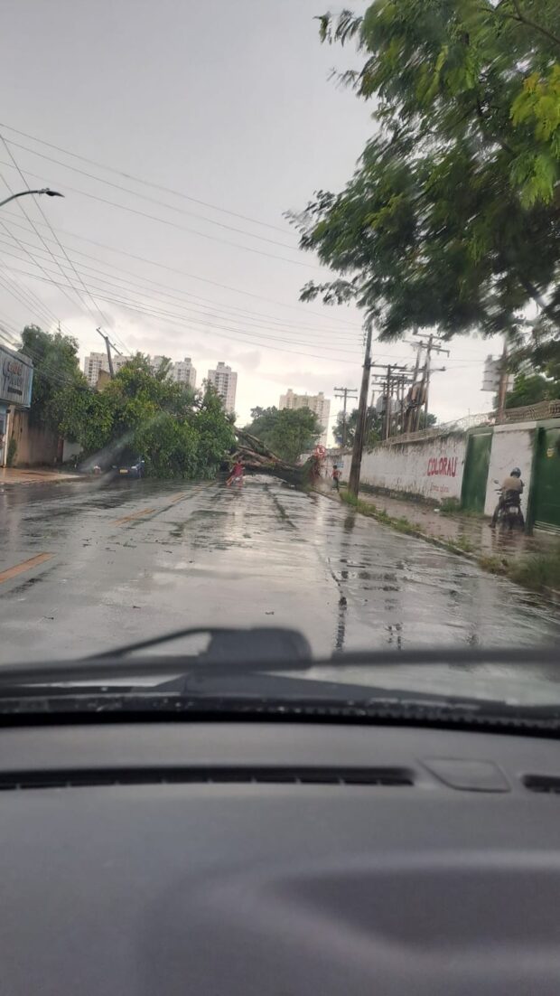 Já na Avenida 85, próximo à Rede Store, uma outra árvore acabou caindo, fechando duas faixas da avenida e paralisando o trânsito. O Corpo de Bombeiros Militar de Goiás (CBMGO), atendeu ao menos duas ocorrências envolvendo quedas de árvores na capital.