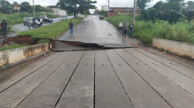 Neste sábado, 19, as chuvas intensas provocaram o rompimento da ponte sobre o Córrego Água Limpa, na altura da Avenida Acary Passos, no Residencial Vale do Araguaia, em Goiânia. Em nota, a Secretaria Municipal de Infraestrutura Urbana (Seinfra) e Secretaria Municipal de Mobilidade (SMM), afirmaram que o local foi interditado e orientou que motoristas busquem rotas alternativas.