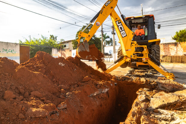 “A gente quebra a calçada para fazer a interligação, refaz a calçada e ainda tampa a fossa da pessoa. Porque às vezes ela não tem recurso para tapar uma fossa e fica aquela coisa perigosa na calçada. Então, a gente está fazendo o serviço completo”, disse o prefeito.