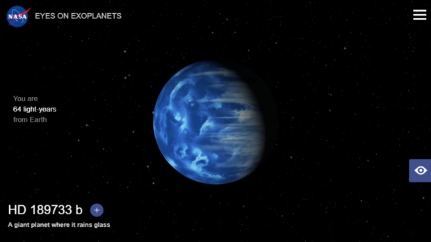 Este longínquo planeta azul pode parecer um refúgio amigável – mas não se engane! O clima aqui é mortal. A cor azul cobalto do planeta vem de uma atmosfera nebulosa e incendiada contendo nuvens atadas com vidro.