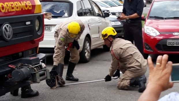 O Corpo de Bombeiros Militar do Estado de Goiás resgatou, nesta terça-feira, 12, uma cobra no Setor Nova Suíça, em Goiânia. De acordo com a corporação, ela estava no pneu de um veículo estacionado na Praça Wilson Sales.