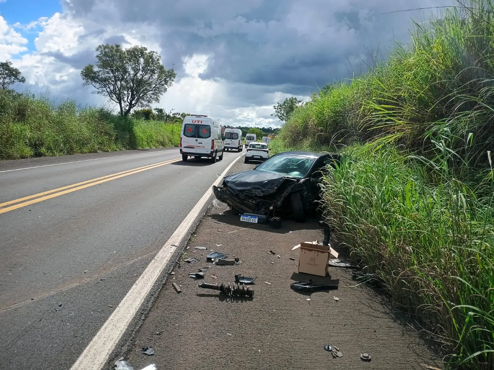 Equipes do Corpo de Bombeiros Militar do Estado de Goiás atenderam, na tarde de sábado, 4, um acidente envolvendo um caminhão bi-trem e um carro de passeio na BR-364, km 356, zona rural de Mineiros. Segundo a corporação, houve uma colisão lateral entre um caminhão da marca DAF, carregado com fertilizantes, e um veículo VW Golf, que seguia no sentido Mineiros–Santa Rita do Araguaia. O automóvel ficou com danos significativos na parte frontal e parou às margens da rodovia.