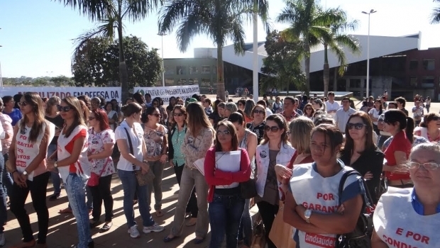 Com possibilidade de greve, servidores da Saúde realizam manifestação no Paço nesta segunda