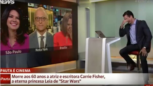 O jornalista Jorge Pontual deixou os telespectadores da GloboNews e os colegas do programa “Em Pauta” boquiabertos nesta terça-feria (27/12) após resolver fazer uma brincadeira ao comentar a repercussão da morte da atriz Carrie Fisher, a Princesa Leia de Star Wars.