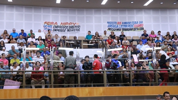 Na manhã desta terça-feira (8/5), centenas de comerciantes da Feira Hippie estiveram na Câmara Municipal onde realizaram manifestação pedindo apoio dos vereadores para que a Prefeitura de Goiânia estenda o funcionamento da feira para as sextas. Atualmente, a Feira Hippie funciona aos sábados e domingos.