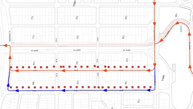 O mapeamento apresentado pela Secretaria Municipal de Trânsito (SMT) mostra que o trânsito da Av. Goiás no sentido Norte/Sul será desviado pelas ruas 70 e 68, ambas paralelas à Goiás. O desvio implicará também na proibição de estacionamento na faixa da direita das duas ruas que receberão o trafego de veículos durante as obras.