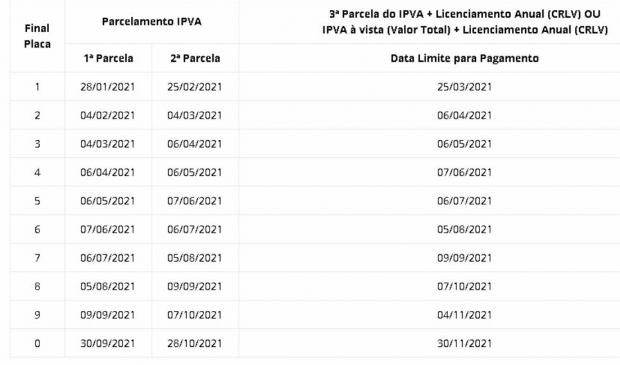Confira calendário para pagamento de parcelas do IPVA em Goiás