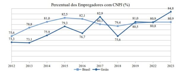 Percentual de empregadores com CNPJ é o maior da série histórica de Goiás
