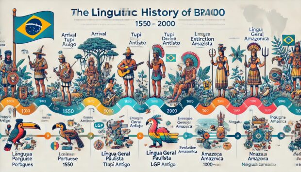 Quando Pedro Álvares Cabral chegou ao Brasil em 1500, o português era praticamente inexistente entre os povos nativos. O território brasileiro era habitado por uma grande diversidade de povos indígenas, cada um com sua própria língua: tupi, aruak, karib, ianomâmi, entre outros. Devido à diversidade e ao número reduzido de colonos portugueses, o português não era uma opção viável para a comunicação imediata. Assim, os colonizadores passaram a aprender as línguas nativas, e o tupi se destacou como a mais importante delas, especialmente entre os povos do litoral brasileiro. A partir dessa interação, surgiu a chamada “língua geral”, que acabou por ser adotada em boa parte do Brasil por séculos.