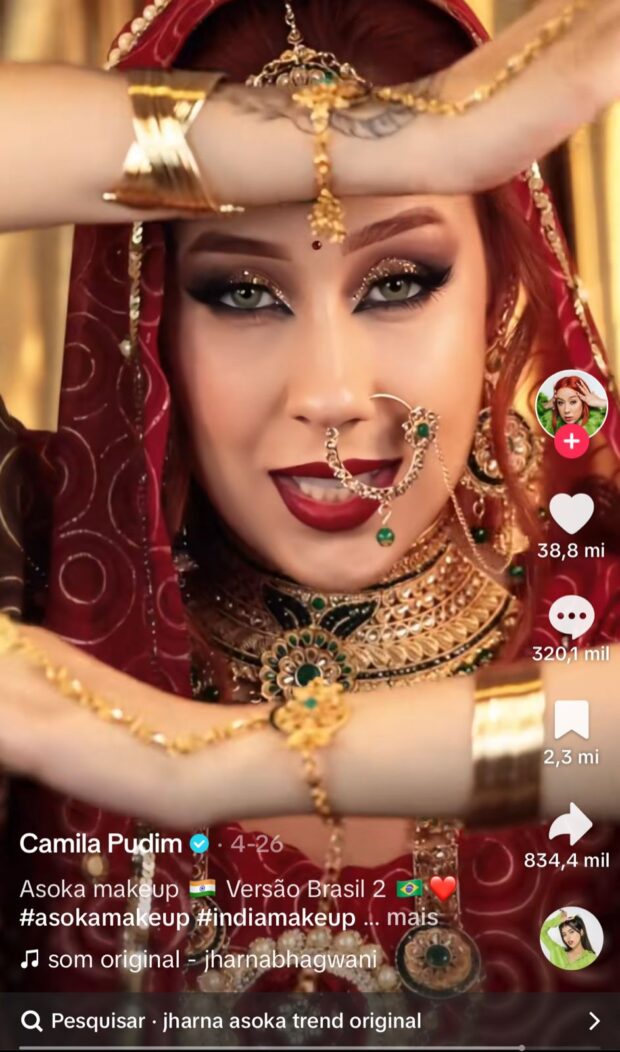 A trend se inspira no filme dramático “Asoka”, de 2001, e foi rapidamente adotado por diversas maquiadoras asiáticas em seus tutoriais. Elas postaram vídeos enquanto dublavam a música e perfomavam movimentos típicos da dança indiana. Para o video de Camila, foram necessárias 18 horas de produção e aproximadamente 30 transições.