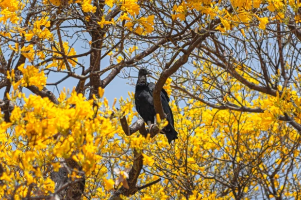 Wanessa de Castro explica o fenômeno: “É uma espécie brasileira, porque se adapta muito bem no cerrado. Essa época do ano traz esse contraste: o cerrado é totalmente seco, com temperaturas altas e estresse hídrico. É esse estresse que ele passa que faz com que ele floresça. Ele perde as folhas para economizar energia para poder florescer e depois soltar sementes para germinarem com a chegada das chuvas”.