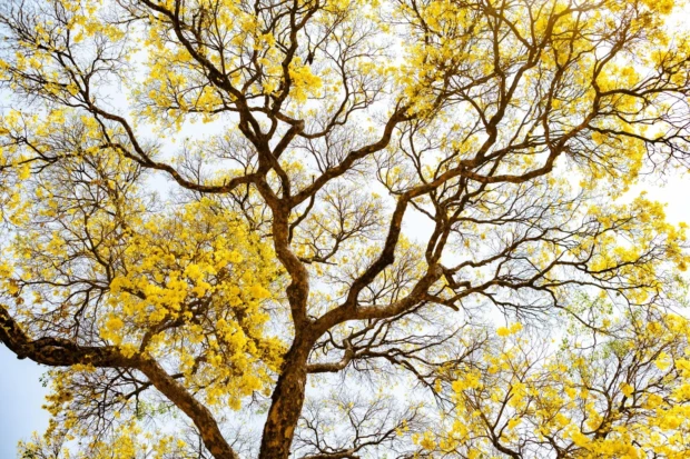 Além de sua história, o ipê-amarelo (Handroanthus serratifolius) é uma maravilha da adaptação biológica. Conhecida como “a flor nacional” do Brasil, sua espetacular floração amarela, que ocorre no auge da seca, é na verdade uma sofisticada estratégia de sobrevivência.