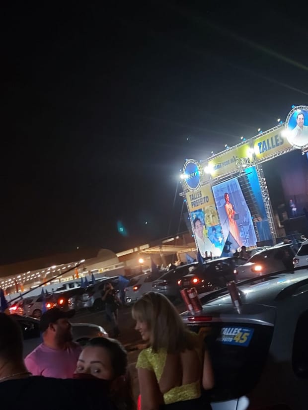 Registros do evento mostram que, apesar da proposta drive-in, evento teve desrespeito a normas contra o coronavírus